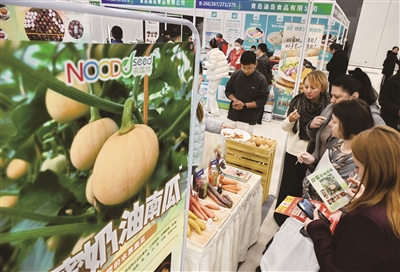 12月19日,客商在博览会一家绿色有机蔬菜展位参观。