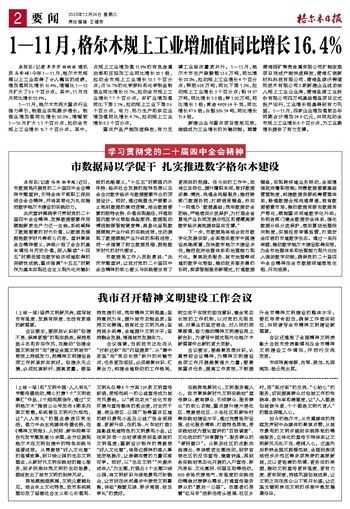 1—11月,格尔木规上工业增加值同比增长16.4%