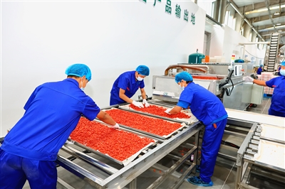 “集团建成枸杞锁鲜生产线8条、原浆生产线1条,开发近50款绿色有机产品,涵盖枸杞、藜麦、沙棘、牛羊肉等系列。”垦旺公司销售部相关负责人邢亮德表示,集团通过抖音、淘宝、京东等线上平台,以及线下旗舰店、商超等渠道合作,产品已销往北京、上海、广州、深圳等大城市。“今年在加大广告投入、拓展渠道的基础上推出新品,销售额从去年500余万元提升至1500万元,实现了经济效益的显著提升。”