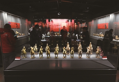 当历史进入盛唐,展厅里,马球、马术、舞马、马上乐等题材的文物集中呈现,千年前的盛世繁华拉至眼前。