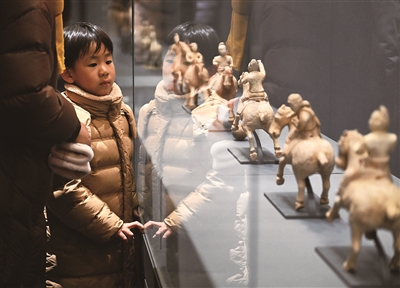 “听说大象陶瓷博物馆要办马文化专题展,我特意一早赶过来。”一件三彩坐姿午马俑前,郑州市桃园中学历史教师魏明不时俯身端详,她兴奋地说,“这场展览小而精,细看文物的每一处细节,仿佛穿越到千百年前,与制作它的匠人产生了跨越时空的连接。”