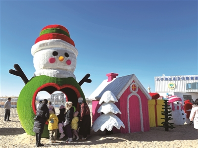 今年新增的三组主题打卡点成为游客争相驻足的热门选择。“雪人小屋”五彩缤纷,各种造型憨态可掬、十分可爱,深受小朋友的喜爱。小朋友们宛如置身童话世界,争相拍照留念。“马踏祥云”和“昆仑神鹿”主题打卡点则气势恢宏、充满张力。三大打卡点从外到内串联起游玩观光路线,让游客在每一处都能收获惊喜。