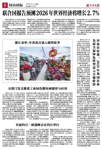 新华社联合国1月8日电(记者 潘云召)联合国8日发布《2026年世界经济形势与展望》报告,预测2026年世界经济将增长2.7%,略低于2025年2.8%的预估增速。