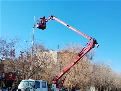 连日来,市城市管理局根据夜间巡查情况,对金峰路、黄河路故障路灯进行维修,更换LED灯珠,吊装灯杆,加固路灯基座。记者 赵倩 摄