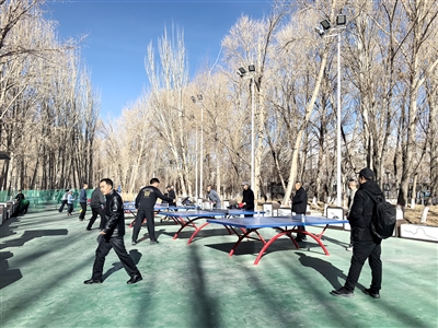 清晨,当阳光刚刚透出暖意时,昆仑公园、儿童公园及体育场健身区域便热闹了起来。“冬练三九,夏练三伏”这句老话在这里得到了生动诠释。老年朋友们身着厚厚的羽绒服,或在步道上结伴散步,唠嗑健身两不误;或在开阔场地打太极拳,一招一式尽显功底,在舒缓节奏中让身体热起来。“我天天来这儿锻炼,冬天练一练,不容易感冒。跟朋友们一块儿唠唠嗑、锻炼锻炼身体,一天的心情都好!”正在打太极拳的市民王守军说,他们一般从早上九点多开始锻炼,选择柔和缓慢的太极运动,既强身健体,又契合老年人的身体状况。乒乓球、篮球、广场舞等各类运动健身活动,与清晨的暖阳相映成趣,市民在运动中驱散寒意,收获满满的快乐与健康。
