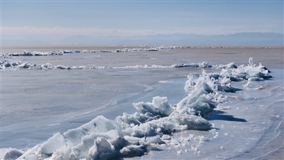 寒冬时节,察尔汗盐湖百里水景线湿地内,冰封的湖面受温度与湖水流动作用,冰层断裂挤压形成形态各异的冰棱带,碎冰堆叠成错落冰丘,在澄澈蓝天的映衬下,勾勒出西北高原独有的冬日美学。