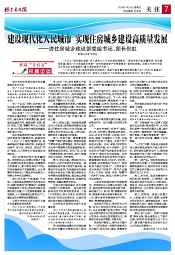 建设现代化人民城市 实现住房城乡建设高质量发展