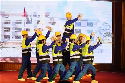 晚会在璀璨灯光与激昂旋律中拉开帷幕。开场舞《格工芳华》以动感矫健的舞姿,将铁路人战天斗地的豪情、坚守高原的执着诠释得淋漓尽致;诗朗诵《我自豪,我是雪域天路的养路人》字字深情、句句铿锵;小品《格工新人说》诙谐演绎了新职工从懵懂到独当一面的成长历程,引发全场共鸣;舞蹈《工人有力量》展现出铁路人“敢啃硬骨头、敢闯无人区”的硬核担当;压轴节目朗诵《格工赋》深情回望格尔木工务段发展历程,字字千钧、掷地有声,将晚会氛围推向了高潮。