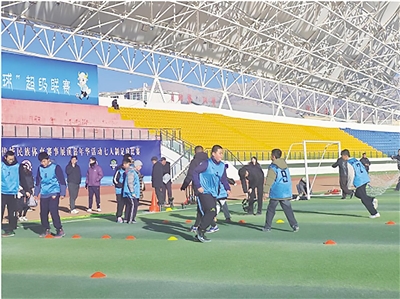 “我从小就喜欢踢足球,能和小伙伴们一起接受专业训练,再冷也不怕!”德令哈市实验小学五年级学生刘梓晨搓了搓冻得发红的双手,又迅速投入到颠球练习中。