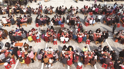 在贵州石阡县甘溪仡佬族侗族乡甘溪村,一场热气腾腾的“千人刨汤宴”同样人气十足。杀猪宰牛、洗菜烹饪,邻里乡亲齐上阵。村里还通过视频平台进行预热和直播,吸引外地游客前来体验。