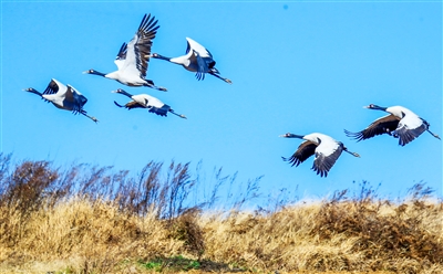 冬日,地处贵州省毕节市威宁县的草海国家级自然保护区呈现万鸟翔集的生态美景,黑颈鹤、灰鹤以及斑头雁等大批候鸟来此越冬。 新华社发(沈光勇 摄)