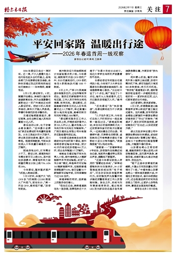 2026年春运已走过一周时间。这一周,不少人提着大包小包行走在返乡出行的路上,各地各部门为迎接春运做足准备,各种年货通过发达的物流网络运往天南海北……年味渐浓,暖意悄至。