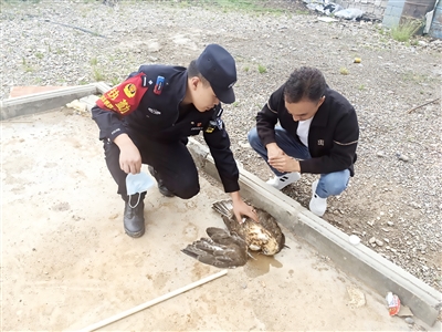 去年深秋,晨光刚刚刺破高原冻土,沱沱河站派出所民警王群、田路昱正沿着青藏线开展线路隐患排查,在海拔4700米的沱沱河,说话都需用力喘息,更别说穿戴装备在寒风中巡逻,两人沉重的脚步踩在积雪上,发出“咯吱、咯吱”的声响,为寂寥无人的荒原增添了一抹生机。突然,一阵微弱的扑腾声引起了他们的注意——不远处的草丛中,一只灰褐色的猛禽蜷缩着,右翼沾染着血渍和沙土耷拉在身侧的石堆上,“它翅膀折了,还在流血,眼睛却倔强地盯着我们。”王群回忆道。凭借派出所常年来开展野生动物保护工作的经验,田路昱认出这是国家二级保护野生动物——隼,它居于高原生态链的顶端,是维系脆弱生态平衡的“空中哨兵”。田路昱没有犹豫,立即脱下外套,轻轻将隼裹住。回到雁石坪警务区,王群立即查阅高原鸟类救助手册,为它清洗伤口、包扎固定,民警们为它取名“追风”,轮流喂食鲜肉和温水。