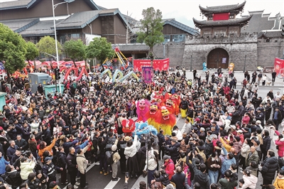 夜幕降临,重庆市大足区昌州古城,60余组大型灯组与3000余盏特色花灯次第点亮,流光溢彩,阖家出游的市民络绎不绝,笑语盈盈。“往年元宵要么走亲访友,要么在家看电视,总觉得少了点年味。”游客段林波感慨道,“今年全家一起逛灯会、赏花灯,这种烟火气,才是咱们老百姓最向往的幸福生活。”