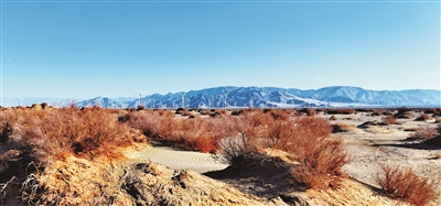 近年来,格尔木市秉持生态优先、绿色发展的理念,在推进新能源产业进程中,严守生态保护红线,尽最大可能减少对戈壁原生植被以及野生动物栖息地的干扰与破坏。如今,风机下,红柳、梭梭等耐旱植物顽强地生长着;远处,山峦如黛,与蓝天白云相互映衬,构成了一幅美丽的景致。工业文明与自然生态在这里实现和谐共存,生动地诠释了“绿水青山就是金山银山”的发展理