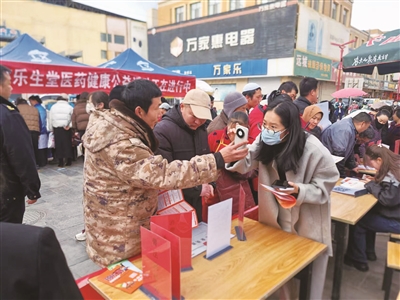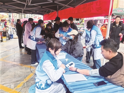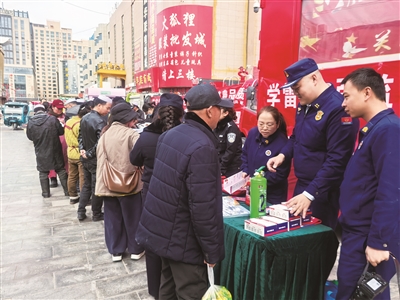 市人民法院志愿者为商户和群众提供法律咨询,引导依法经营、依法维权,助力构建公平公正的市场秩序。东城区消防救援大队消防员结合商圈特点讲解火灾隐患排查、初期火灾扑救及器材使用方法,提高从业人员应急处置能力。市公安局民警普及防范电信诈骗、盗窃等知识,筑牢安全防线。医药公司志愿者现场提供免费测血压、健康咨询和安全用药指导,以暖心服务关爱群众健康。