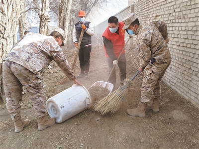 活动现场,军地志愿者手持扫帚、簸箕、垃圾夹等工具,分工协作、默契配合,聚焦辖区大院绿化带、公共活动区、卫生死角等重点区域,全面清理白色垃圾、烟头纸屑、枯枝杂物,彻底整治环境盲区。经过集中整治,辖区环境卫生焕然一新,居住环境品质大幅提升。