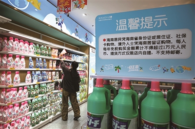 3月12日,顾客在海口旺豪日用消费品免税店购物。