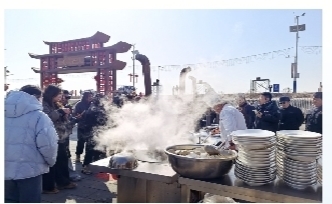 “开河咯!”一声“号子”点燃了黄河“几字弯”文旅热潮,位于黄河北岸的包头市画匠营子村日前举办内蒙古黄河开河观凌文化周活动。烹饪开河鱼的大锅升腾热气,踩高跷、秧歌舞、打铁花等各式表演在黄河岸边接连上演,游客们在堤坝上赏开河凌汛美景,在街集里看演艺、尝美食,人潮熙攘,烟火不绝。