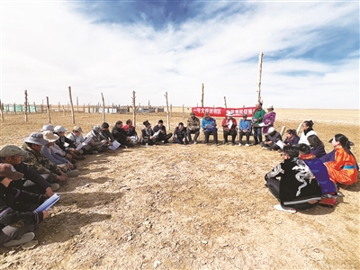 在拖拉海村级综合文化服务中心里,附近的牧民群众早已闻讯赶来,围坐在一起,等候聆听宣讲。高原的寒风还在吹,但大家的心是热乎的。宣讲干部围绕锚定农业农村现代化、扎实推进乡村全面振兴主题,紧扣生态保护、牧民增收、民生保障等核心内容,将“草原生态保护政策”“畜牧良种项目补贴”“饲草料生产支持”“常态化精准帮扶”“宜居宜业和美乡村建设”等政策,转化为牧民听得懂、记得住的“家常话”,逐一解读群众最关心的养殖补贴、生态奖补、医保养老、产业发展等问题。