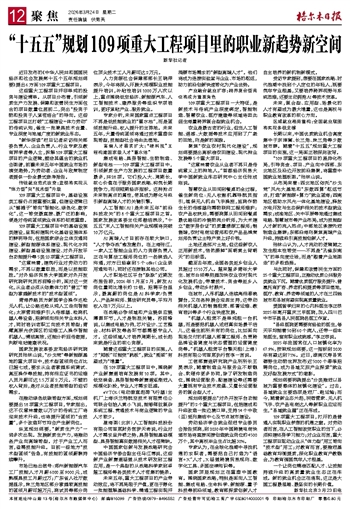 “新华深读”栏目记者采访相关部委负责人、企业负责人、行业专家及教育界学者等人士,拆解109项重大工程项目的产业逻辑,描绘其蕴含的就业机会图谱,前瞻未来五年中国就业市场的演变趋势,为劳动者、企业与政策制定者提供一份全景式参考报告。