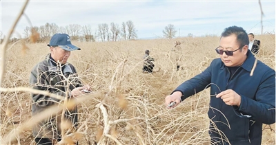 眼下,海西蒙古族藏族自治州都兰县21万余亩(1亩≈0.0667公顷)枸杞进入春季剪枝关键期。春季枸杞剪枝是田间管理的第一道“关口”,科学修剪能够均衡分配树体营养,改善通风透光条件,有效减少病虫害发生。针对春季修剪管护不规范等问题,都兰县组织科技特派员下沉一线,面对面、手把手指导农户科学修剪,以科技力量夯实基础,助力枸杞产业发展提质增效。图为科技特