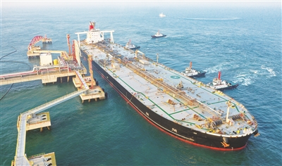 2025年12月18日,一艘装载着石化原辅料的外籍船舶泊入位于海南省儋州市的国投洋浦油储码头30万吨级原油泊位(无人机照片)。当日,海南自由贸易港正式启动全岛封关。新华社记者 郭程 摄