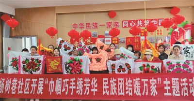 本报讯(记者 张金凤)丝线传情谊,巧手聚人心。3月24日,杨树巷社区居委会联合社区“小白杨”文化文艺志愿服务队,在“石榴籽家园”活动室举办“巾帼巧手绣芳华,民族团结暖万家”主题刺绣活动。活动以针为媒、以线会友,为各民族妇女搭建起交流交融的温馨平台,丰富辖区妇女群众精神文化生活,传承中华优秀传统刺绣文化,营造出民族团结一家亲、同心共筑中国梦的良好社区氛围。