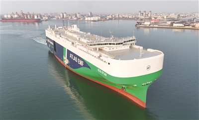 4月2日,7000车位双燃料汽车运输船“洁能之星”轮在山东港口烟台港龙口港区投入运营。该船配备液化天然气(LNG)动力系统,同时采用“氨预留”设计,可在升级改装后使用清洁的氨燃料。该运输船由中集来福士为希腊一航运公司建造,3月30日交付后抵达龙口港区。 新华社发(唐克 摄)